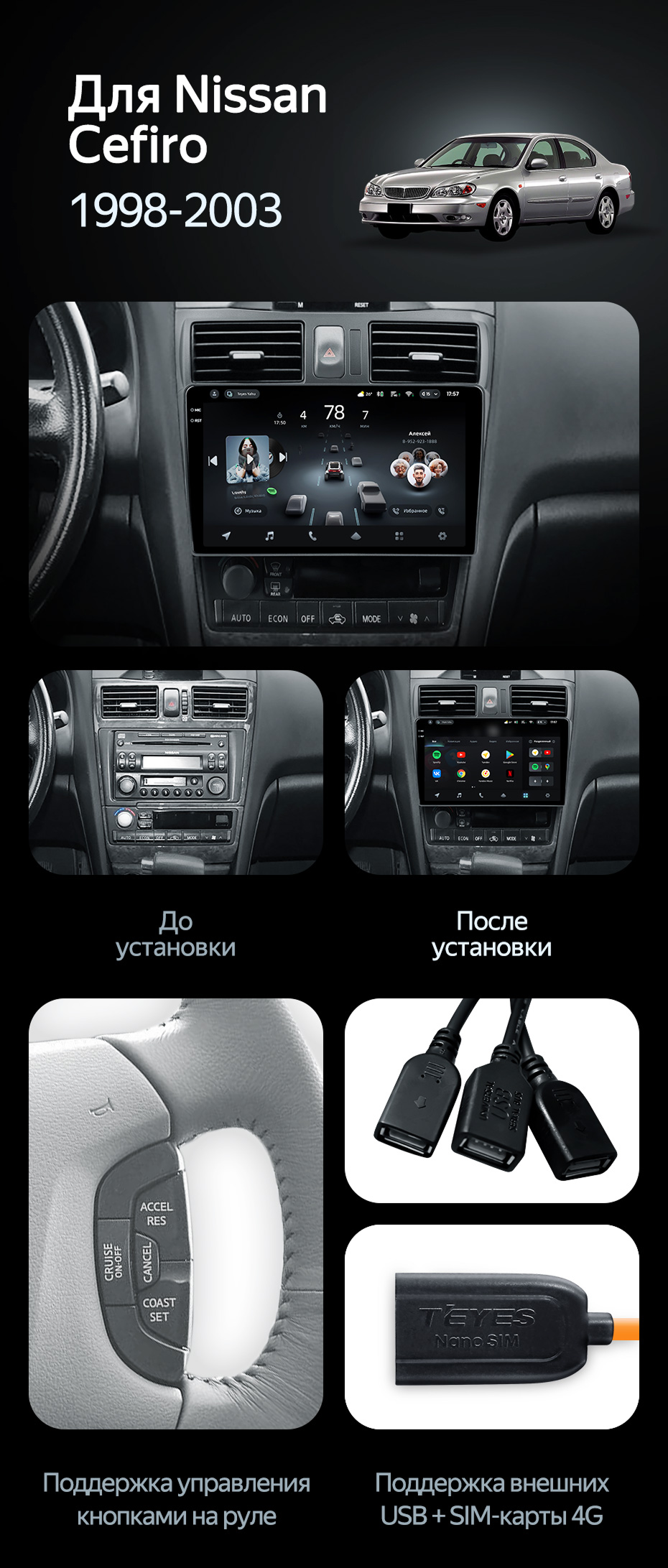 Переходная рамка Nissan Cefiro 3 A33 (1998-2003) F2 (9") - купить всего за 3 600 руб. в интернет-магазине в Волжском Teyes.com.ru. ✓ Самый лучший выбор мультимедиа ✓ Лучшая замена штатному ГУ ✓ Тел. +7 (800) 775-31-74