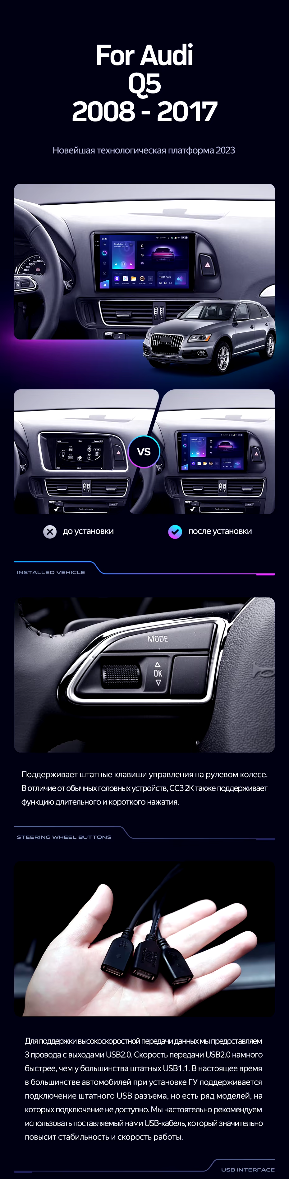 Штатная магнитола Teyes CC3 2K 4/32 Audi Q5 8R (2008-2017) Тип-A - купить всего за 42 340 руб. в интернет-магазине в Волжском Teyes.com.ru. ✓ Самый лучший выбор мультимедиа ✓ Лучшая замена штатному ГУ ✓ Тел. +7 (800) 775-31-74
