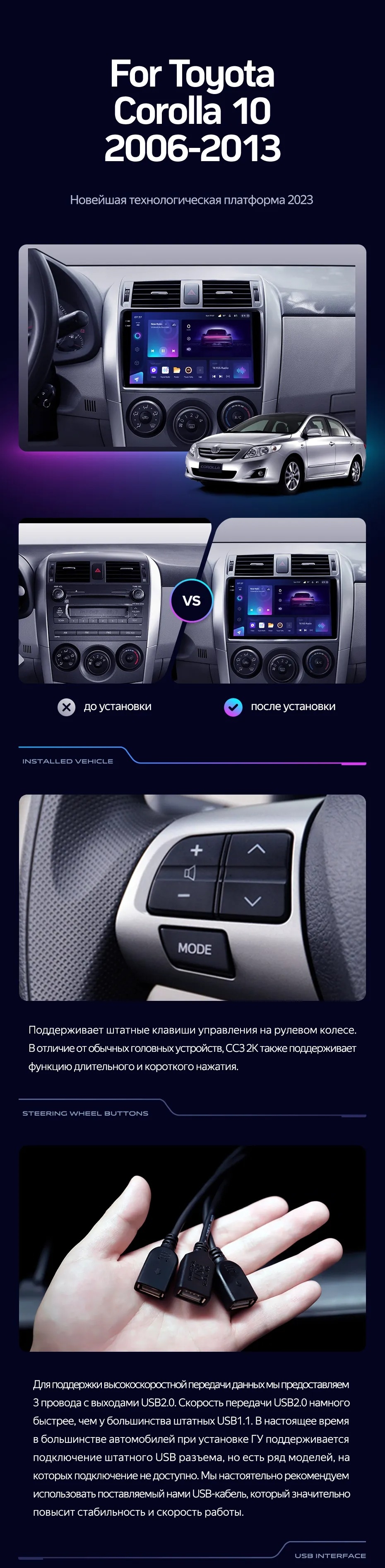 Штатная магнитола Teyes CC3 2K 4/32 Toyota Corolla 10 E140 E150 (2006-2013) Тип-A - купить всего за 38 860 руб. в интернет-магазине в Волжском Teyes.com.ru. ✓ Самый лучший выбор мультимедиа ✓ Лучшая замена штатному ГУ ✓ Тел. +7 (800) 775-31-74