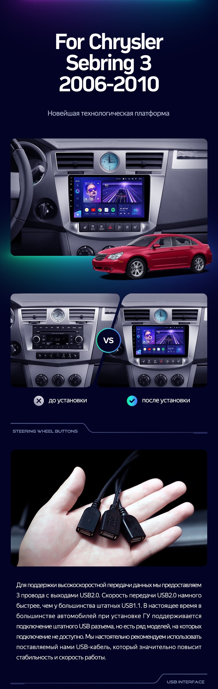 Штатная магнитола Teyes CC3 2K 4/64 Chrysler Sebring 3 JS (2006-2010) - купить всего за 47 200 руб. в интернет-магазине в Волжском Teyes.com.ru. ✓ Самый лучший выбор мультимедиа ✓ Лучшая замена штатному ГУ ✓ Тел. +7 (800) 775-31-74