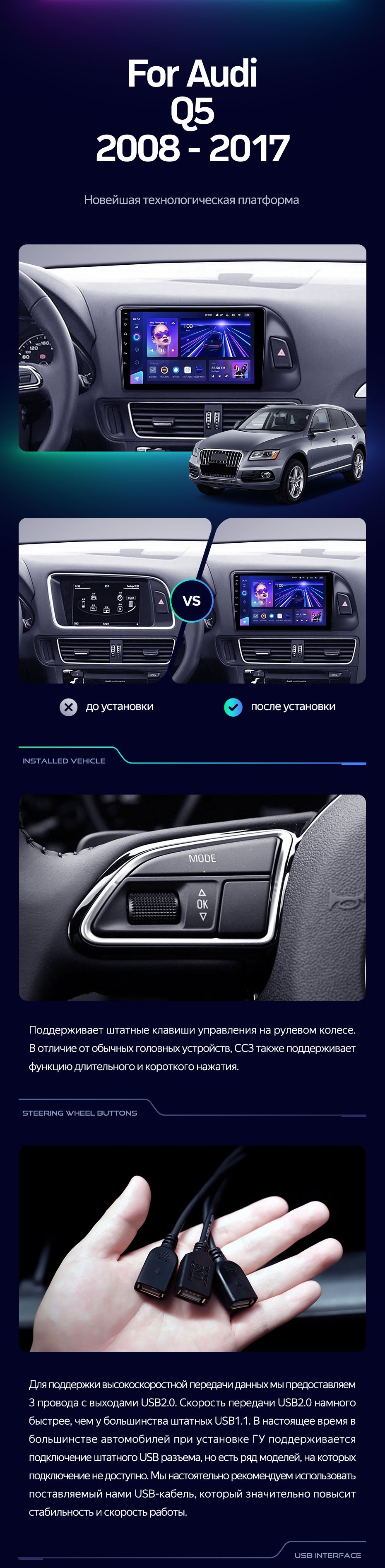 Штатная магнитола Teyes CC3 4/32 Audi Q5 8R (2008-2017) Тип-B - купить всего за 37 300 руб. в интернет-магазине в Волжском Teyes.com.ru. ✓ Самый лучший выбор мультимедиа ✓ Лучшая замена штатному ГУ ✓ Тел. +7 (800) 775-31-74