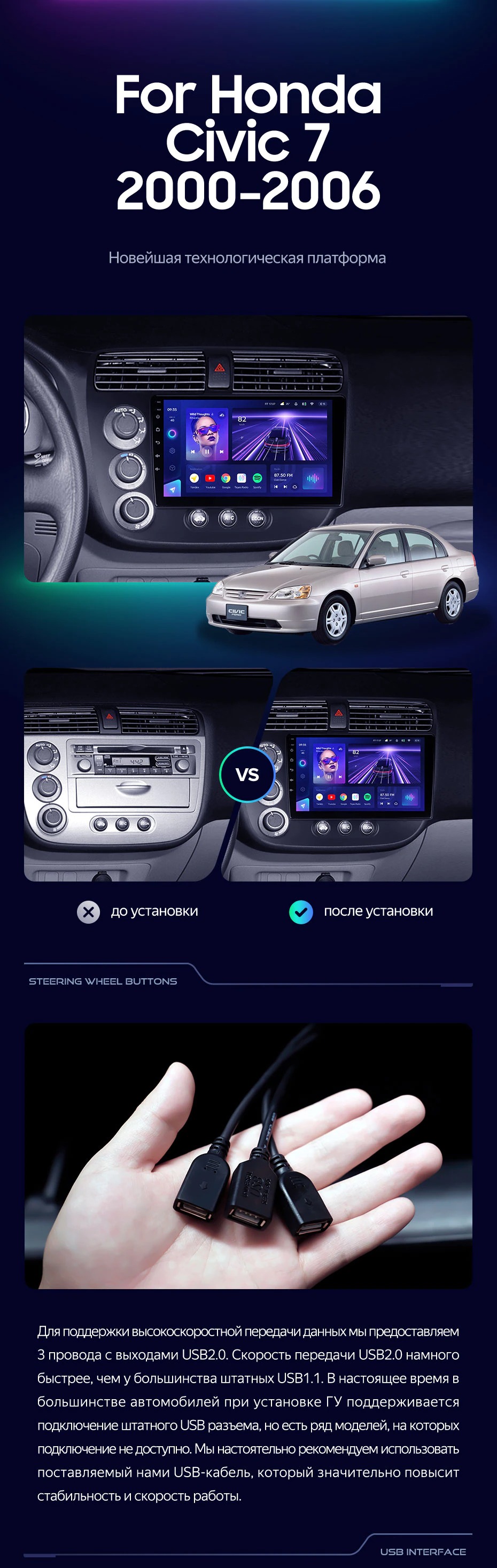 Штатная магнитола Teyes CC3 4/32 Honda Civic 7 (2000-2006) F1 - купить всего за 32 530 руб. в интернет-магазине в Волжском Teyes.com.ru. ✓ Самый лучший выбор мультимедиа ✓ Лучшая замена штатному ГУ ✓ Тел. +7 (800) 775-31-74