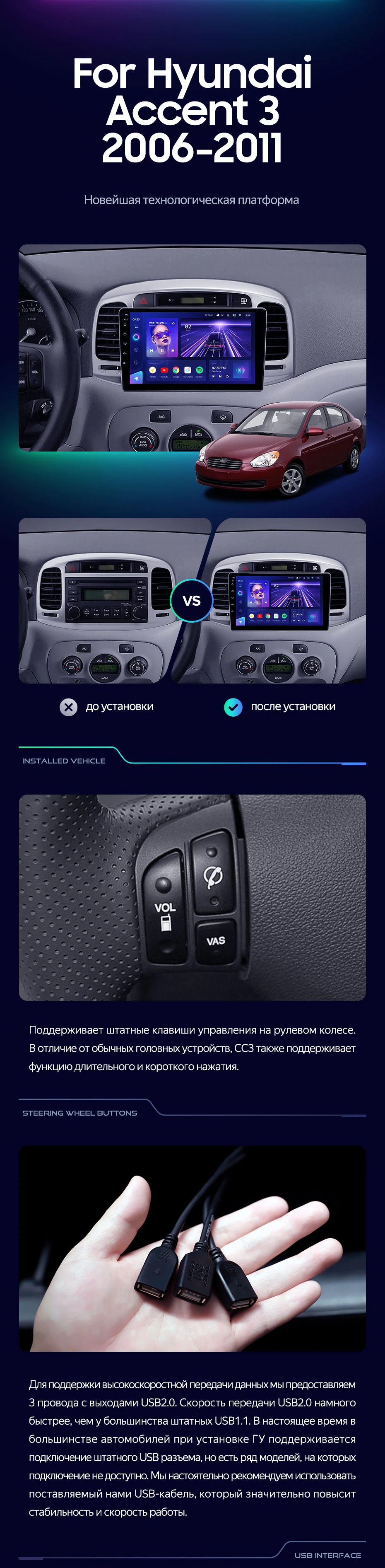 Штатная магнитола Teyes CC3 4/32 Hyundai Accent 3 (2006-2011) - купить всего за 32 630 руб. в интернет-магазине в Волжском Teyes.com.ru. ✓ Самый лучший выбор мультимедиа ✓ Лучшая замена штатному ГУ ✓ Тел. +7 (800) 775-31-74