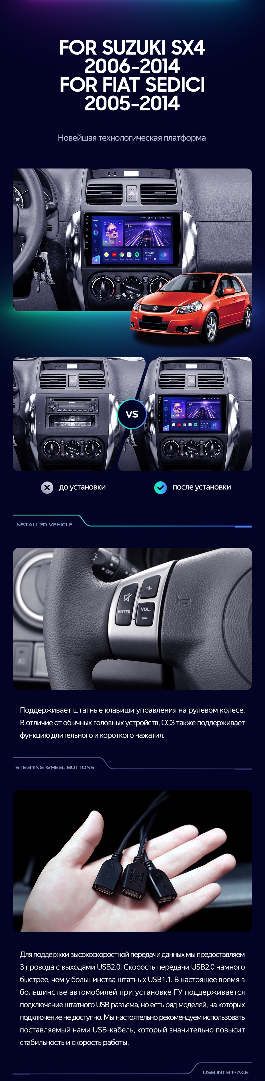 Штатная магнитола Teyes CC3 4/32 Suzuki SX4 1 (2006-2014) - купить всего за 32 230 руб. в интернет-магазине в Волжском Teyes.com.ru. ✓ Самый лучший выбор мультимедиа ✓ Лучшая замена штатному ГУ ✓ Тел. +7 (800) 775-31-74