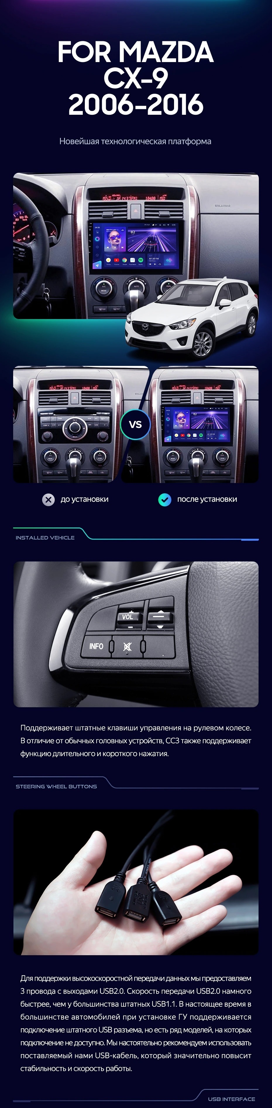 Штатная магнитола Teyes CC3L 4/32 Mazda CX-9 TB (2006-2016) - купить всего за 30 040 руб. в интернет-магазине в Волжском Teyes.com.ru. ✓ Самый лучший выбор мультимедиа ✓ Лучшая замена штатному ГУ ✓ Тел. +7 (800) 775-31-74