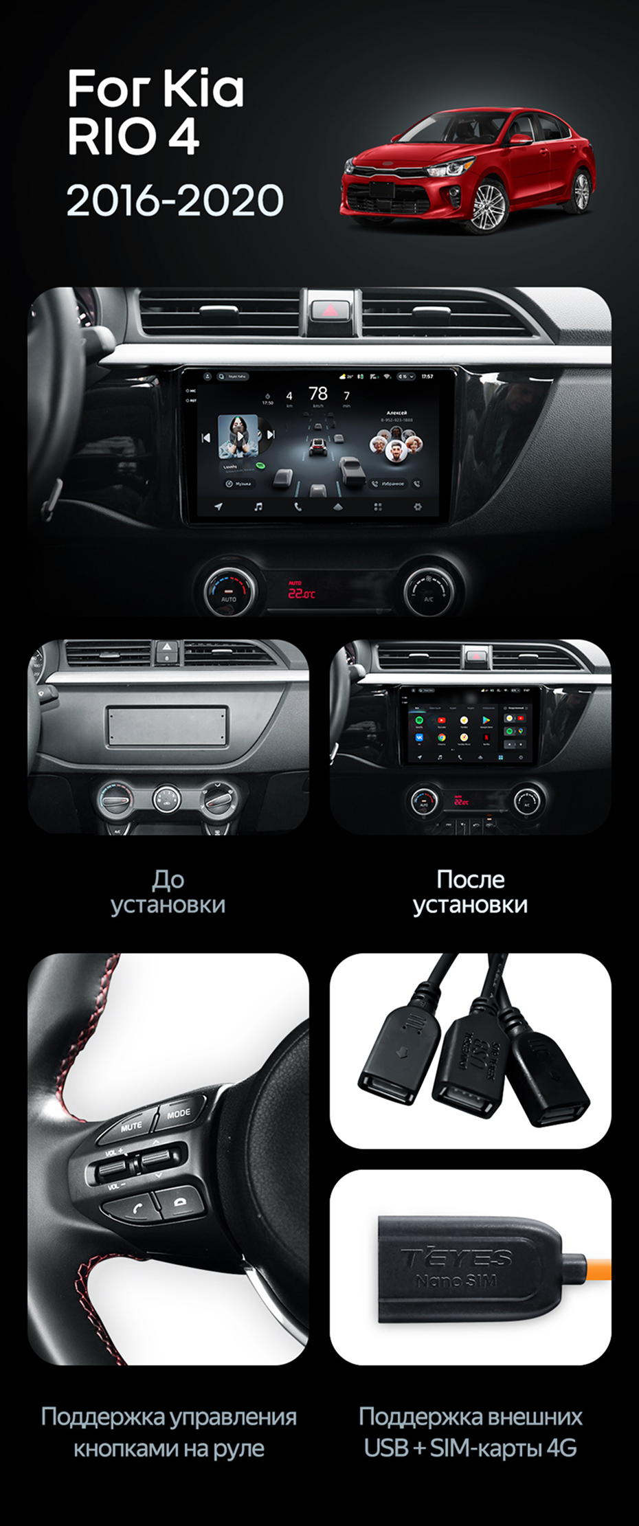 Штатная магнитола Teyes CC4 6/64 Kia Rio 4 (2016-2020) Тип-B - купить всего за 43 440 руб. в интернет-магазине в Волжском Teyes.com.ru. ✓ Самый лучший выбор мультимедиа ✓ Лучшая замена штатному ГУ ✓ Тел. +7 (800) 775-31-74