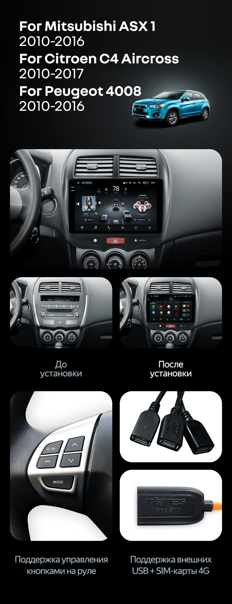 Штатная магнитола Teyes CC4 8/128 Mitsubishi ASX 1 (2010-2016) Тип-A - купить всего за 52 560 руб. в интернет-магазине в Волжском Teyes.com.ru. ✓ Самый лучший выбор мультимедиа ✓ Лучшая замена штатному ГУ ✓ Тел. +7 (800) 775-31-74