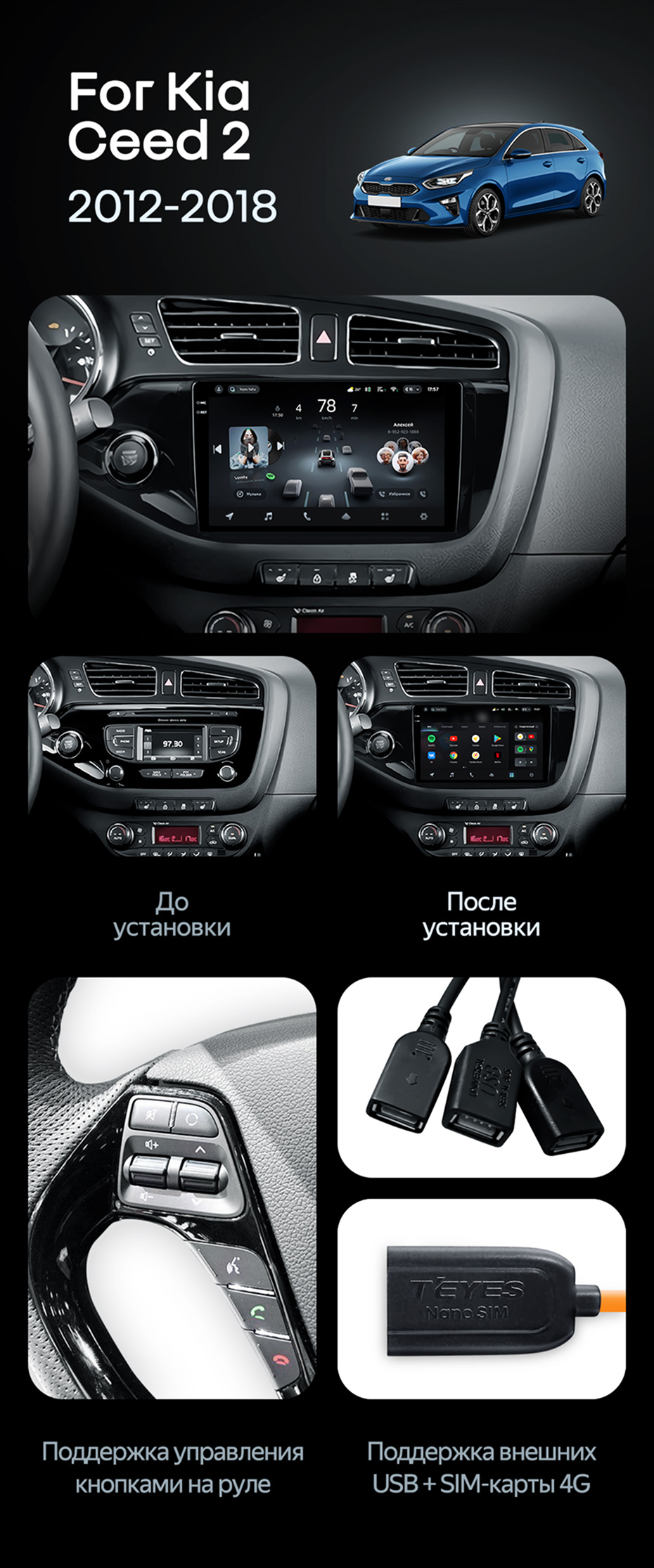 Штатная магнитола Teyes CC4 Pro 12/256 Kia Ceed 2 JD (2012-2018) - купить всего за 70 110 руб. в интернет-магазине в Волжском Teyes.com.ru. ✓ Самый лучший выбор мультимедиа ✓ Лучшая замена штатному ГУ ✓ Тел. +7 (800) 775-31-74