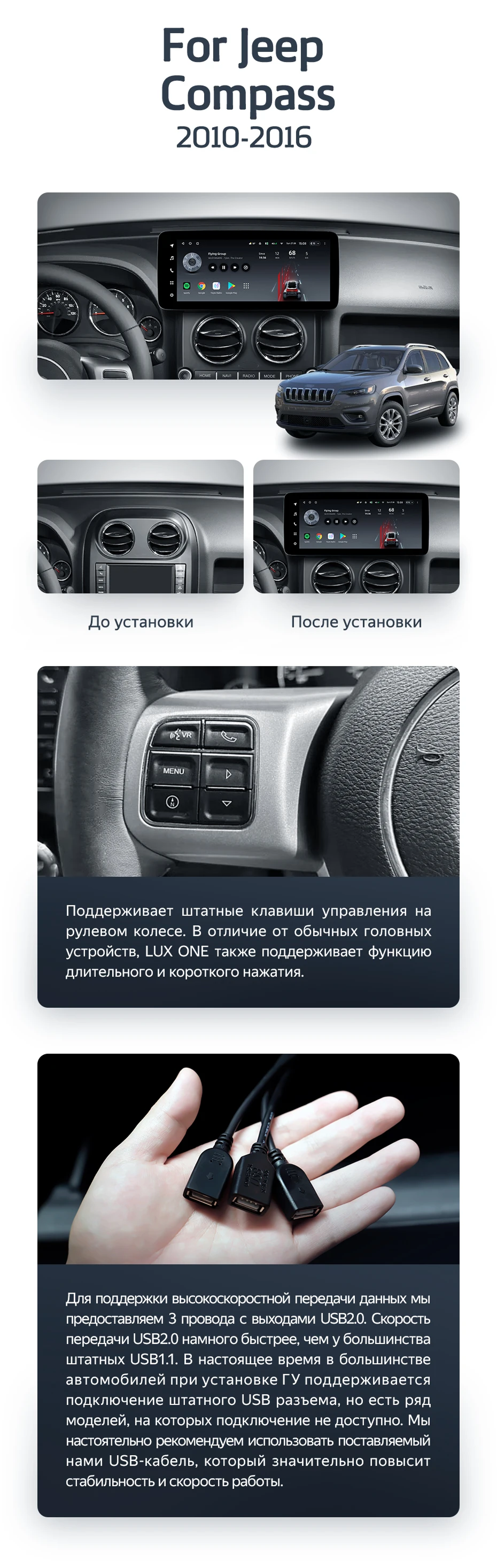 Штатная магнитола Teyes LUX ONE 4/64 Jeep Compass MK (2010-2016) - купить всего за 44 900 руб. в интернет-магазине в Волжском Teyes.com.ru. ✓ Самый лучший выбор мультимедиа ✓ Лучшая замена штатному ГУ ✓ Тел. +7 (800) 775-31-74