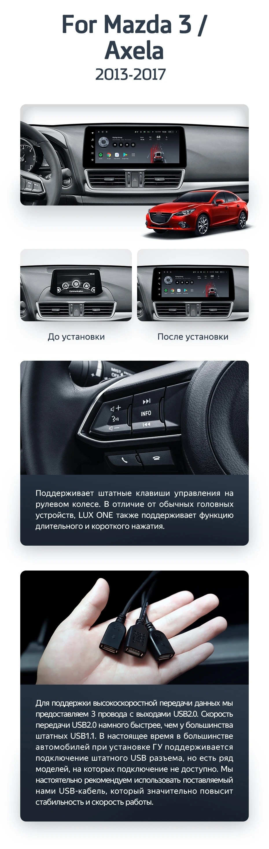 Штатная магнитола Teyes LUX ONE 6/128 Mazda 3 BM (2013-2017) Тип-A - купить всего за 47 300 руб. в интернет-магазине в Волжском Teyes.com.ru. ✓ Самый лучший выбор мультимедиа ✓ Лучшая замена штатному ГУ ✓ Тел. +7 (800) 775-31-74