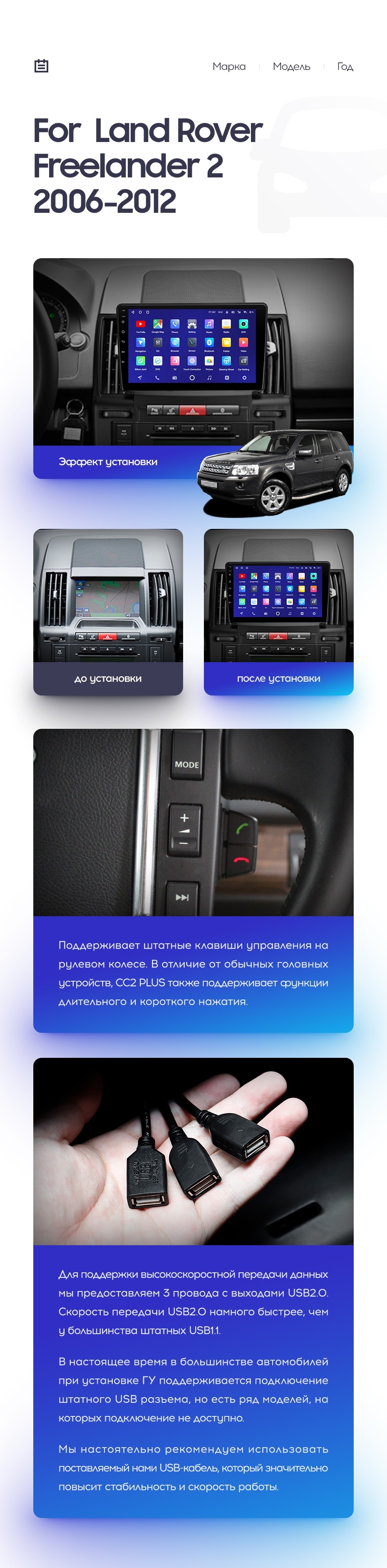 Полный комплект установки магнитолы Teyes с рамкой и проводкой можно выбрать в каталоге штатных магнитол Land Rover Freelander 2 (2006-2012).